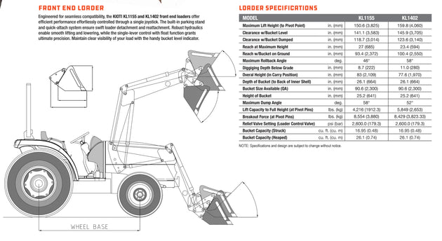 - Versatility: Combines powerful performance with KIOTI's renowned user-friendly controls, making it the ideal primary workhorse for mid-sized operations.
