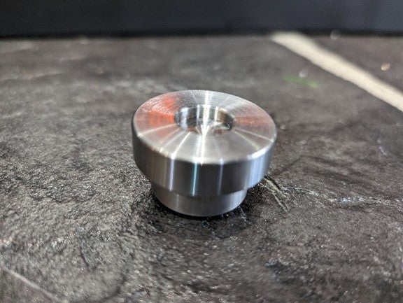 This bushing install tool inserts into the bushing to avoid damage to the threads during installation. There is a recessed point for a simple punch to index into the installation tool. Then simply tap it into the block with a hammer.