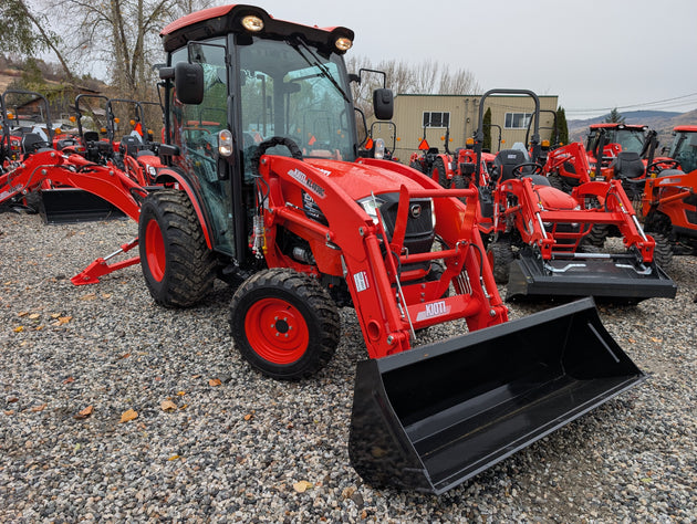 CK2620 Models, at 25 HP, are at a great pricepoint and work very well for acreage tasks. Snow clearing, driveway maintenance, trail blazing, and light rototilling all come naturally to this model. Unstoppable in low gear, and it powers through in medium range on most days, but high range is reserved for flat or down hills only. If you want the phenomenal loader performance of the CK at an amazing price point, and you're not in a hurry, this CK2620 might just be perfect for you. Far and away our best selling tractor. This model is also the largest tractor in the KIOTI lineup that still retains the simplicity of a fully mechanical "old school" diesel engine, no computers, no emission systems. *Note that there is no premium SE Model available in an open station in this model.