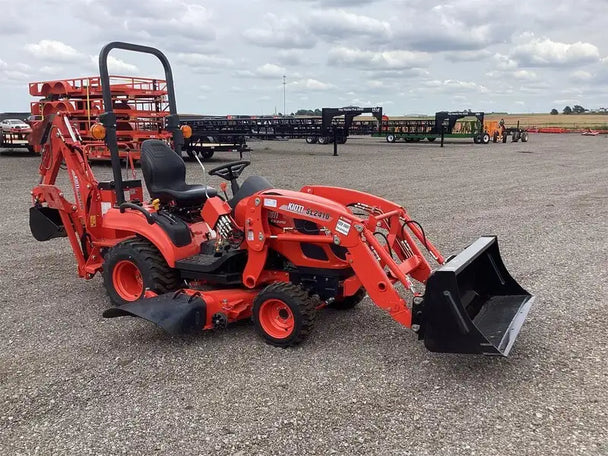 - Backhoes: Turn your sub-compact tractor into a serious digging machine. KIOTI backhoes offer deep trenching capability and are ideal for digging out stumps, utility work, and light excavation tasks.